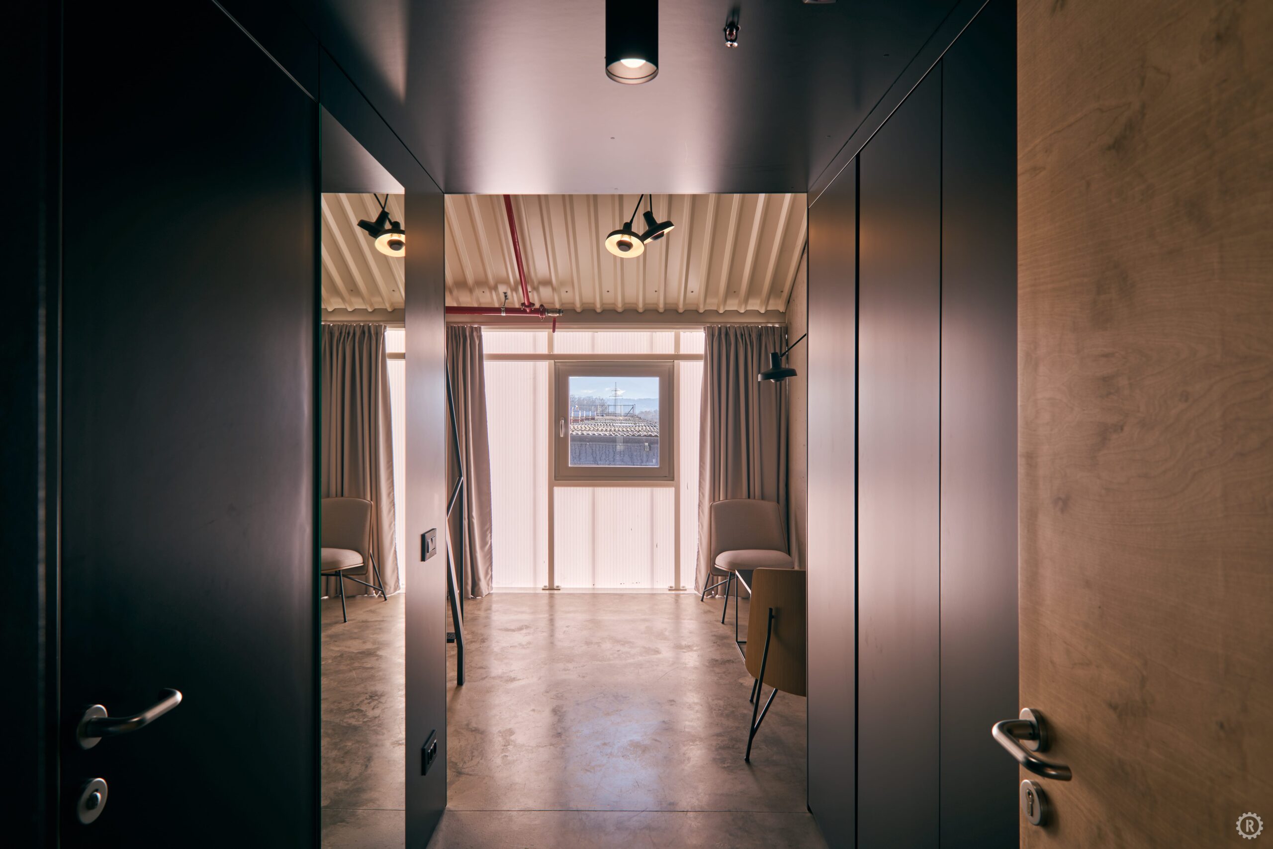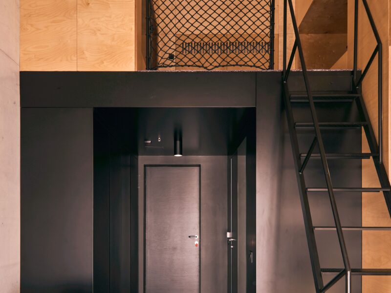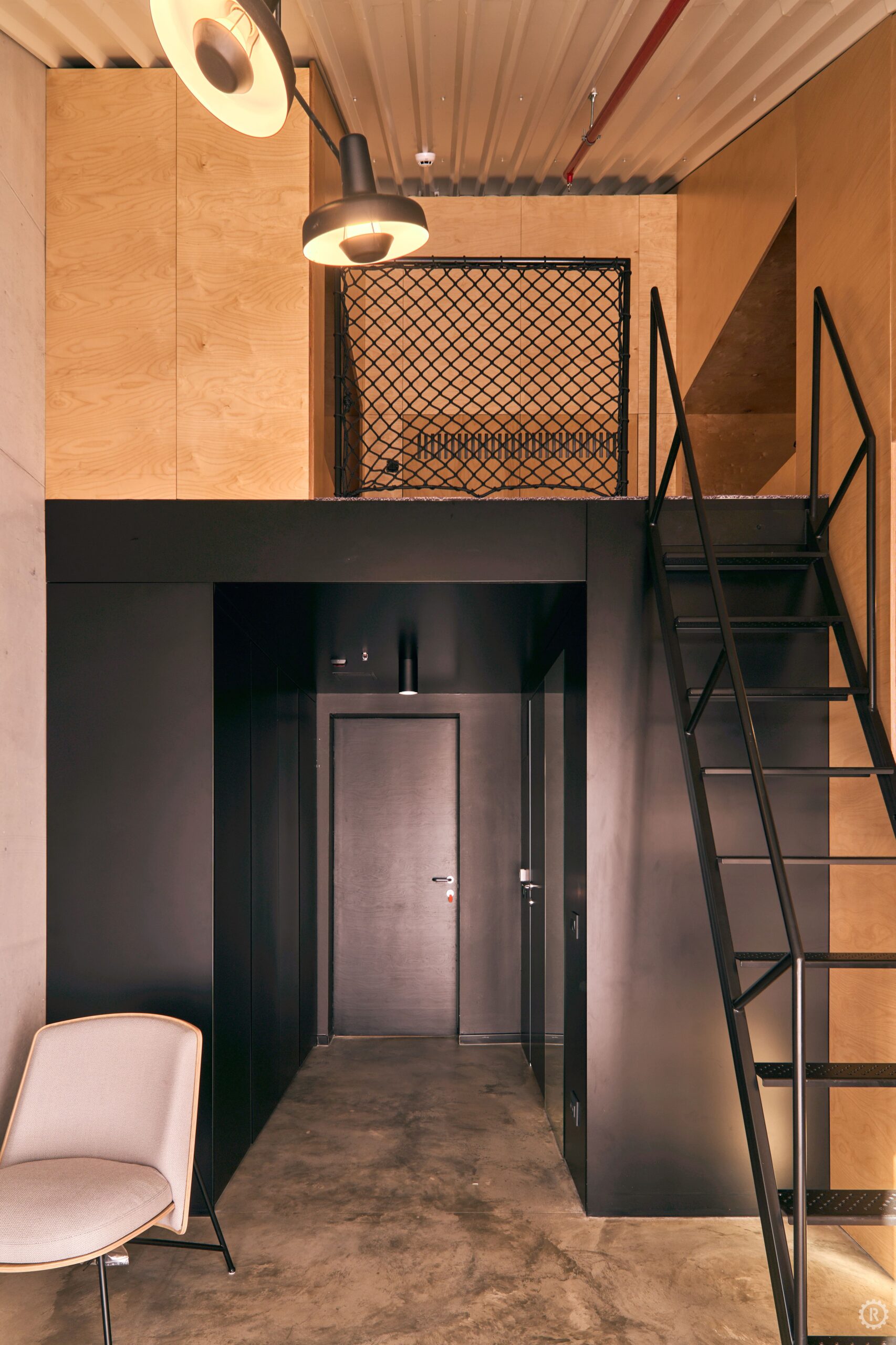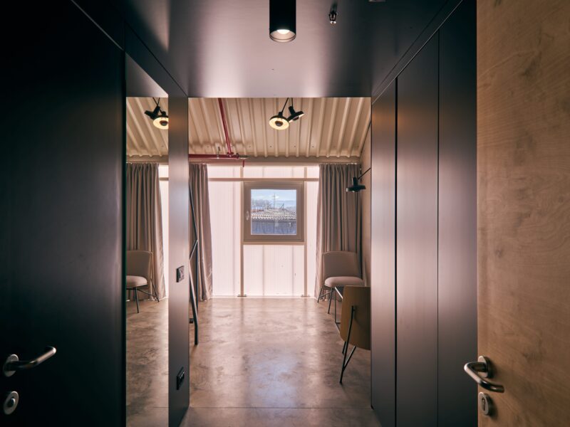 Hostel se nalazi na drugom katu Inkubatora i sadrži pet smještajnih jedinica s ukupno 18 ležajeva, potpuno opremljenu kuhinju, blagovaonski prostor te lounge zonu. Iako je režimski izdvojen i izravno dostupan izvana, hostel je vizualno povezan s ostalim etažama vertikalnom prazninom.